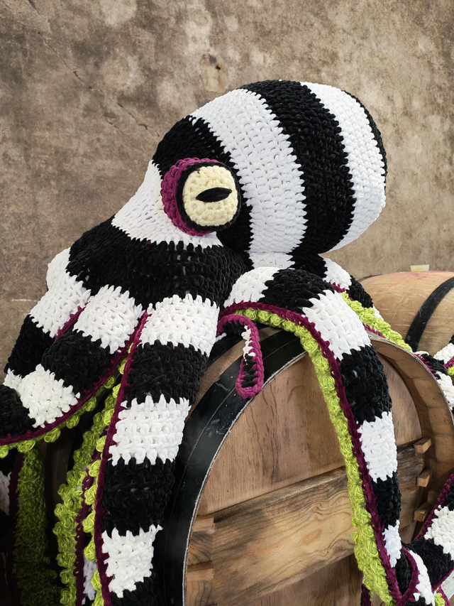 Tu peux adopter ce petit poulpe rayé noir et blanc d'environ 3kg et d'environ 1m80