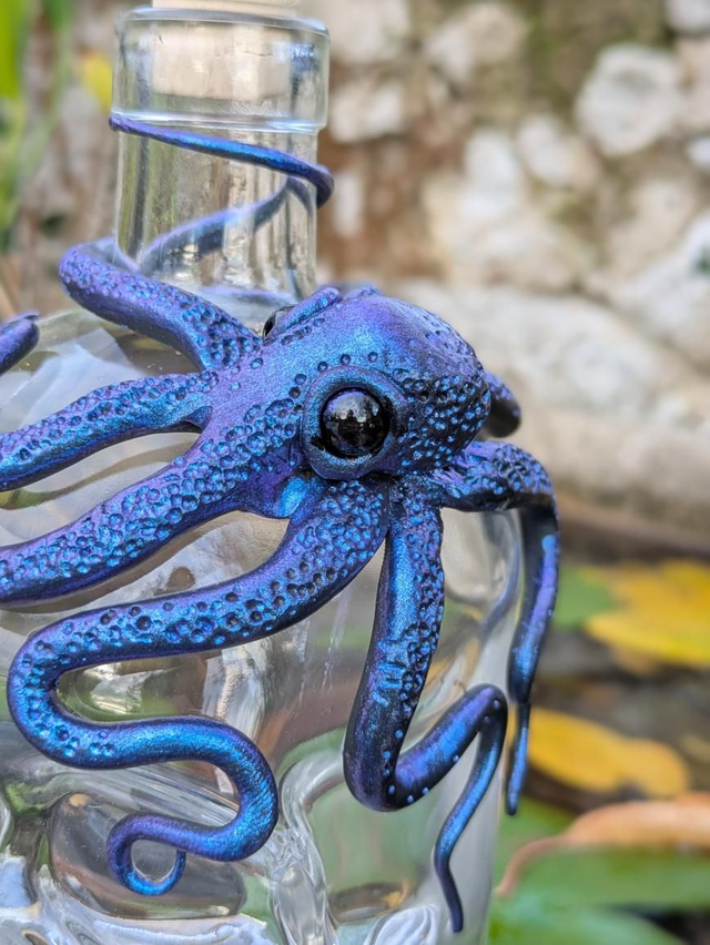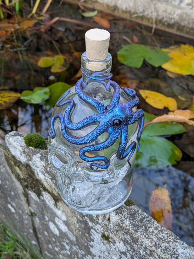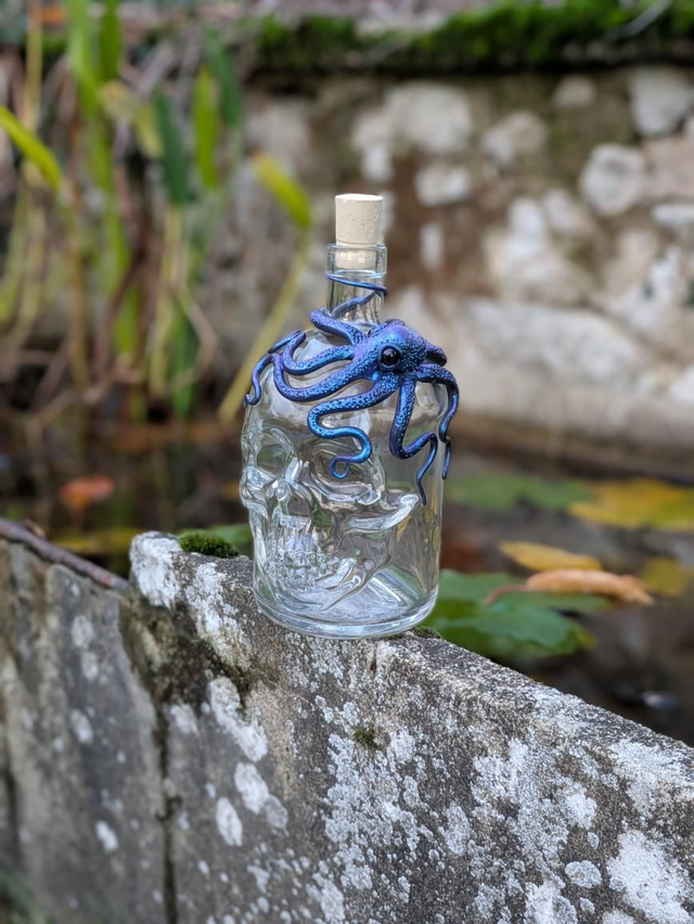 Bouteille crâne 70 cl pieuvre bleue