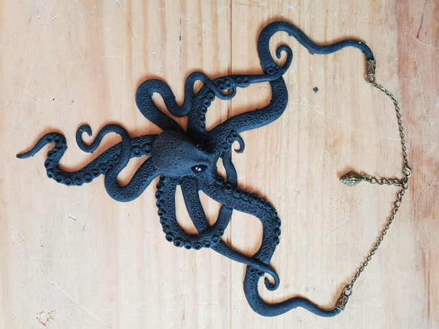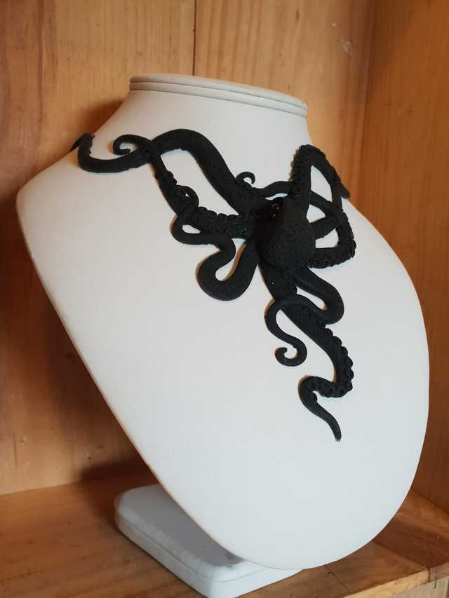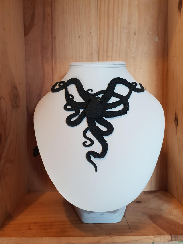 Le collier pieuvre noir, mat et modeler en silicone ce qui le rend complètement malléable.