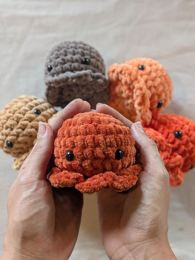 Chaque pieuvre est confectionnée avec soin selon la technique japonaise de l’amigurumi, garantissant un rendu de haute qualité et une texture ultra douce au toucher.
